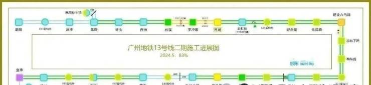 目前在建13号二期横跨黄埔天河越秀荔湾和白云五大主城区,比肩3号线黄金动脉,目前工程进度84%