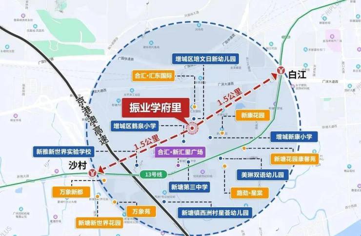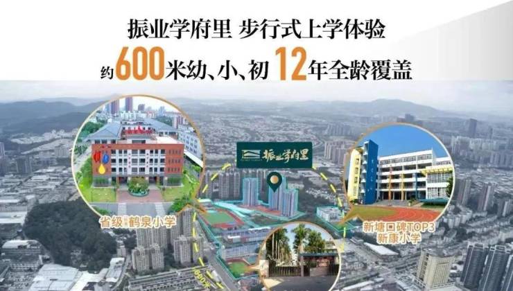 项目600米范围内就分布有新康小学、鹤泉小学、新塘三中以及多所幼儿园。