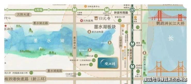 境湖玥位于汉阳区江堤中路与墨水湖南路交汇处,同时占据了2.5环内、二环旁的核心地段。