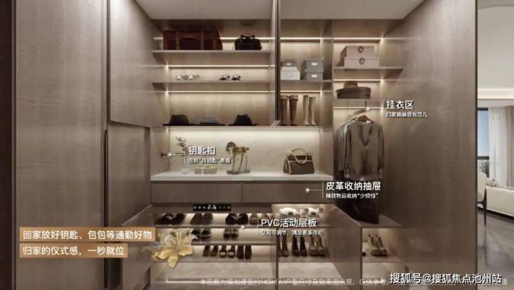 前瞻规划入户玄关柜,交付容量约2.153m³≈48个20寸登机箱大小(注:以建筑面积约143m²BRIGHT户型计),通勤好物一秒就位,将归家礼序收放自如。