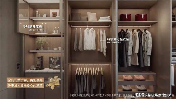 主卧加载容量约9.42m³≈210 个20寸登机箱大小(注:以建筑面积约167m²BRIGHT户型计)。衣柜科学挂衣区,设置收纳开放格,四季衣物各归其位,礼遇每一位精致生活家。