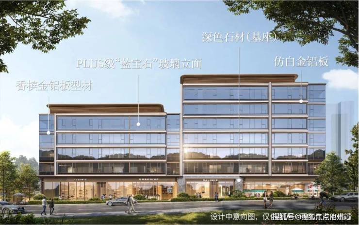 润百合以全球视野精选型材:PLUS级“蓝宝石”玻璃立面+香槟金铝板、深色石材(基座)等,施以精湛繁复工艺,雕琢建筑【白金之澜】隽永之美,为CBD绽放一朵【永恒之花】,无惧时光的检阅与洗礼。