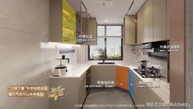 交付容量约6.22m³≈139个20寸登机箱大小(注:以建筑面积约167m²BRIGHT户型计)。升降拉篮、调味拉篮、转角钻石柜等灵动设计,高效提升烹饪效率,烟火气也能井井有条。