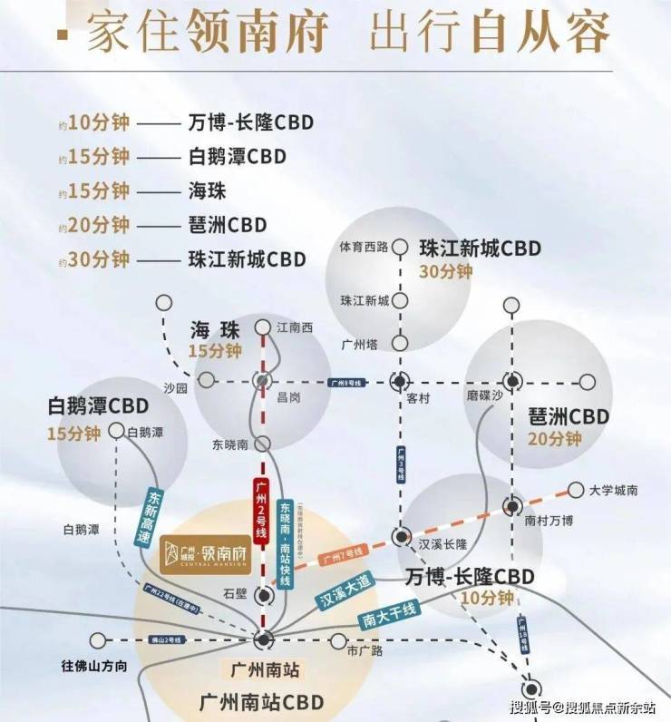 通过2号线、22号线、广佛环线、海珠湾隧道等多维交通,珠金琶、白鹅潭、海珠,全都能直达。