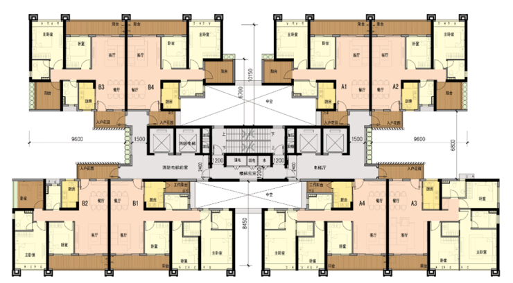 项目住宅为南北对流布局,四梯八户,每两条电梯负责四户业主的上落,互不干扰。