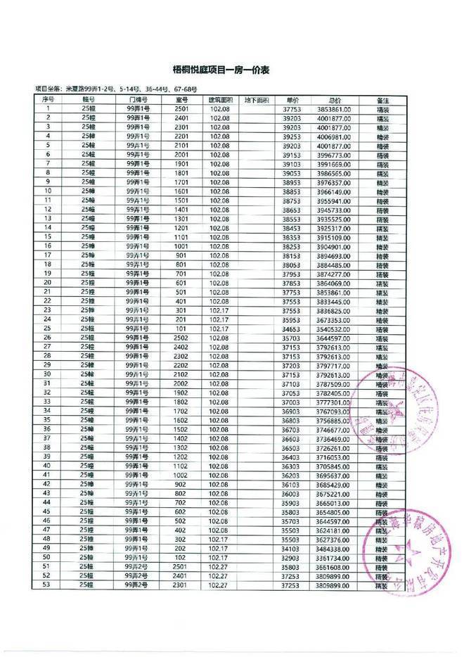 项目最新一房一价表如下: