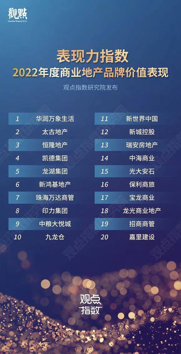 2022商业地产表现力指数榜:华润万象生活居首位,恒隆凯德巩固优势