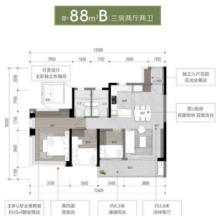 88㎡户型:7米超长阳台+12㎡餐厨一体化,满足家庭欢聚场景