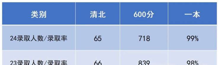 1、2024年高考清北录取65人,清北上线率高达7.5%,600分上线人数高达718人;