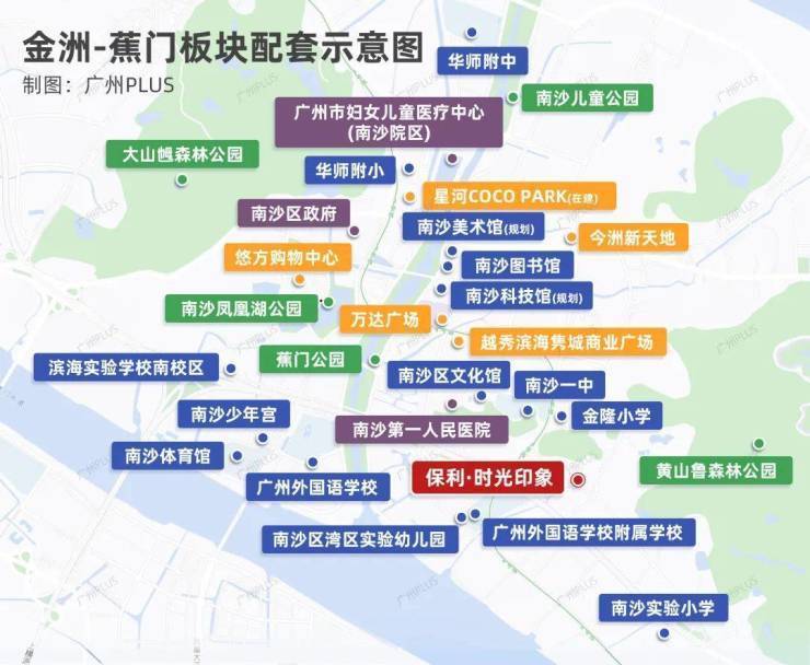 项目所在的金洲蕉门城区,是南沙的行政、商业、文化和居住中心,聚集了超70%的总部企业,80%的成熟配套汇聚于此。而与之相邻的明珠湾CBD,包含灵山岛尖商务区与全国首个国际金融岛,规划能级最高,配置最优,规模打造超1000亿元,目标打造成为第二座珠江新城。保利时光印象处于区府中心与金融岛CBD双芯交汇之地,尽享区域发展带来的各项红利。