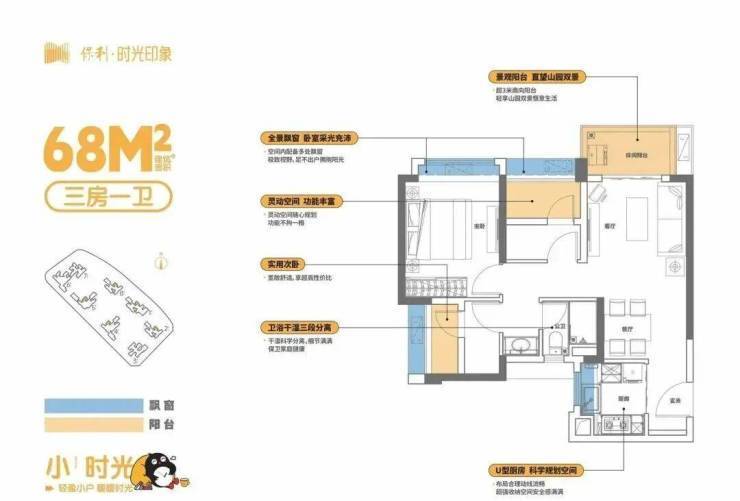 保利时光印象推出的户型堪称南沙稀缺,69 - 115㎡的高实用率舒适三至四居,是保利第五代产品。68㎡三房一卫户型,低总价上车,功能齐全,相比市面上同等功能户型少10㎡,却能省下一半首付钱,还带有 +1房高拓空间,可打造多功能房,北眺黄山鲁森林景观,视野无遮挡,是刚需首置优选。