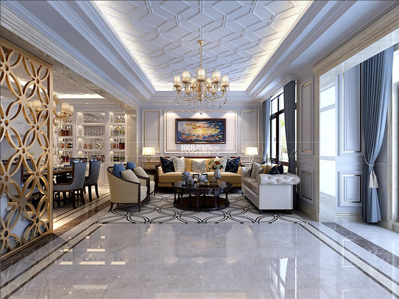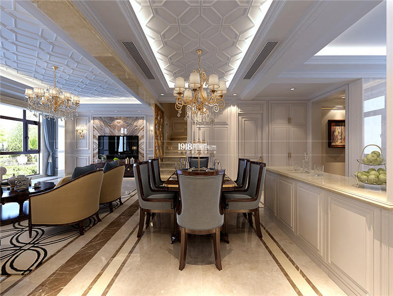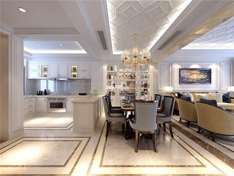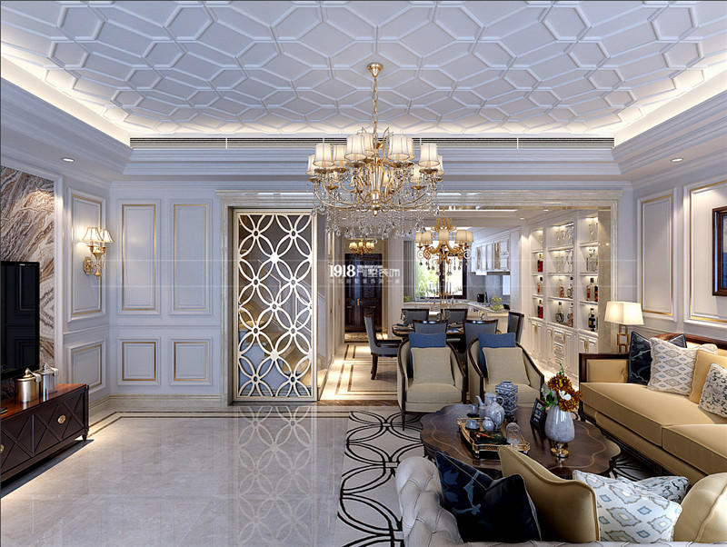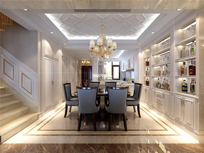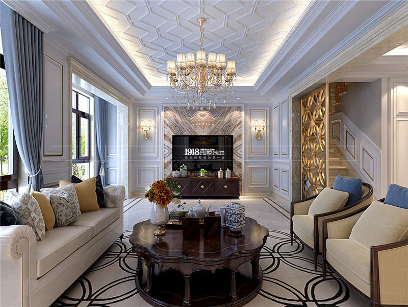 沈阳美好奉玺台210平美式轻奢装修效果图-1918别墅装饰
