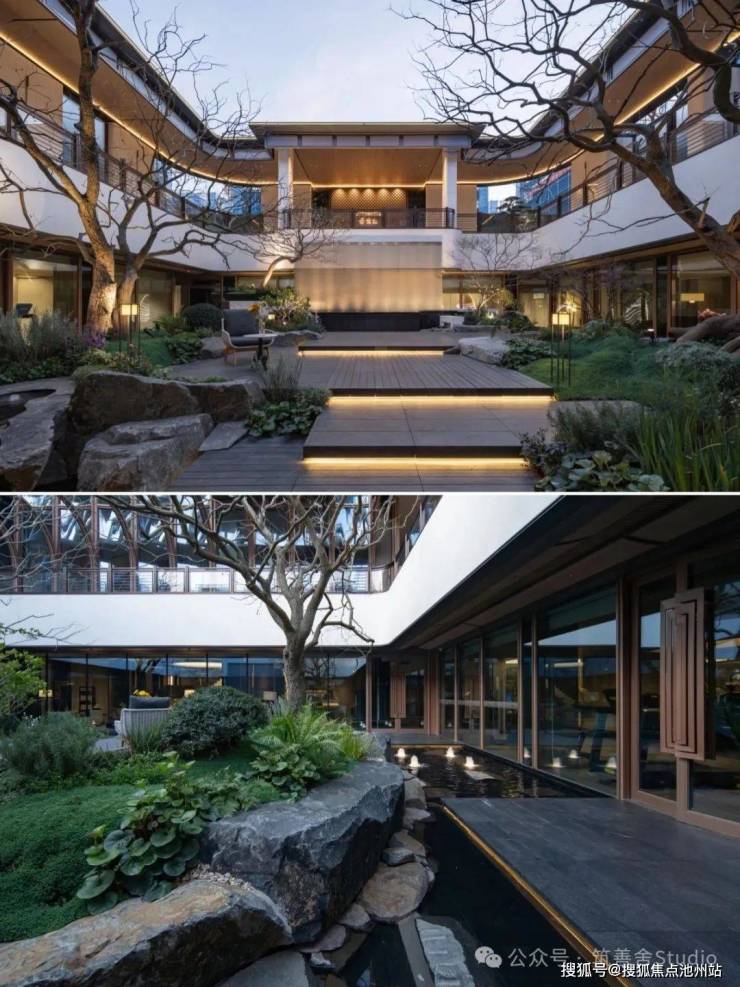 穿过恢弘大门,步入其中,不经意间便邂逅百年乌桕、日本黑松等珍稀名木,以及普拉达绿奢石、巴西黑金沙等奢华材质。漫步洄游式的四方形游廊,空间布局立体流畅,层次分明,松涛与泉水、奇石与清溪相映成趣。这里,宋式园林的精粹得以完美呈现,漫步其中,您将沐浴在一条引人入胜的行进艺术之中。