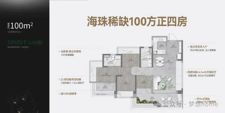海珠唯一 100方内正四房,LDKG+X一体化 4.1m方正巨厅