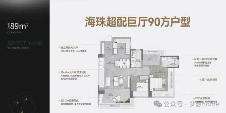 约28㎡成长型大主套 灵动可变三房 ,270°全景飘窗 无限广角
