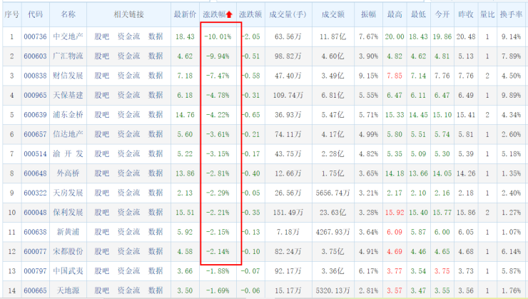 焦点财经发现,截至5月31日收盘,亦有A股其他中小房企股价也遭遇了不同程度的下降,“妖股”中交地产触及跌停,广汇物流、财信发展、天保基建等跌幅居前。