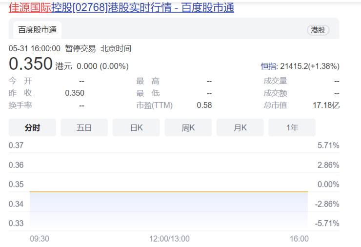 根据佳源国际控股5月31日中午较新公告,控股股东明源集团投资有限公司持有的约3.14亿股股份被证券公司透过孖展证券账户在公开市场强制出售,公司继续停牌,而明源集团由公司主席兼非执行董事沈天晴控制。