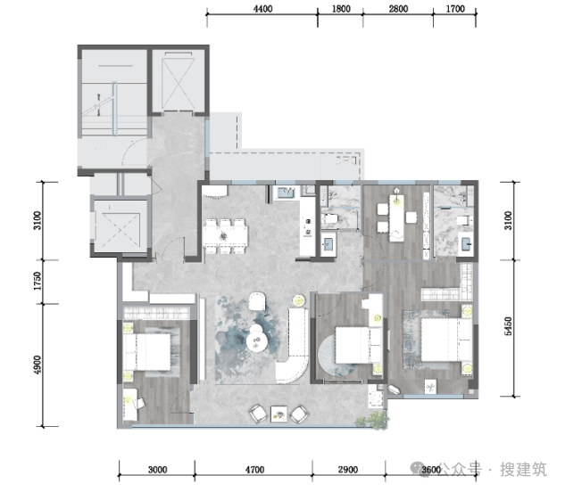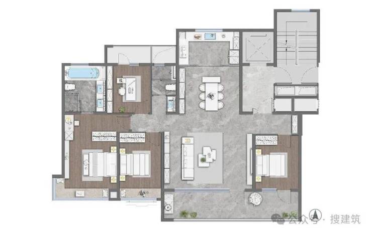 三卫设计,每个次卧的空间把握也非常得体,这个户型的空间奢阔感媲美核心区域建面约180㎡+、200㎡+。