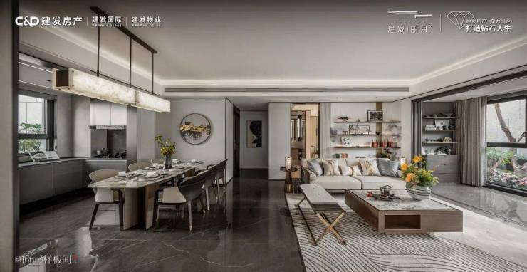 LDKG一体化餐客厅,空间阔绰。无论是商界精英们举办私人沙龙或宴会,还是家庭派对中来一场小型爵士音乐会,都能从容应对。