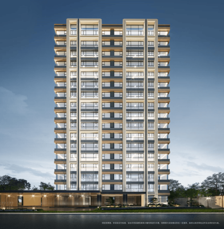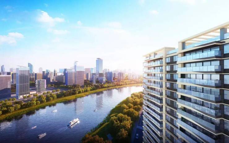 整个项目立面,保利天汇·天御采用了现代设计风格,提取江边浪花元素,采用大面积的特殊丝印玻璃,让建筑与江景更加和谐。
