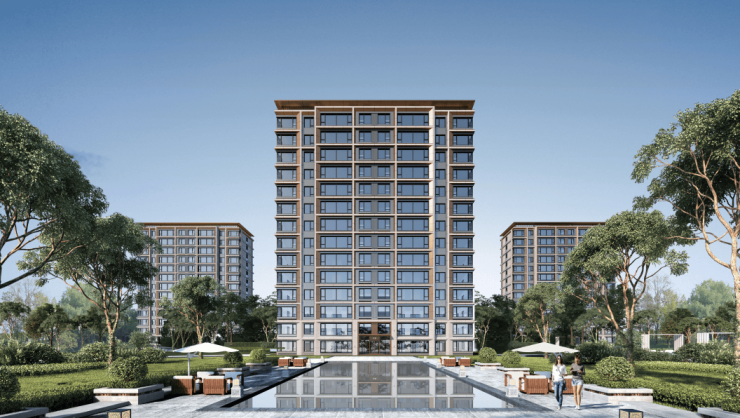 在建筑立面上,华发考虑经典与新的融合感,采用大面积玻璃,辅以金色金属线条进行勾勒,呈现出灵动的现代海派建筑立面,塑造出有立体感的韵律天际线。选择隔音隔热外窗、高效全热交换新风系统等,带来更环保、静谧、健康的生活体验。