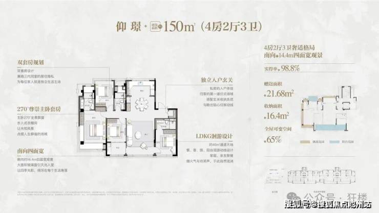 洋房产品也非常可圈可点,户型140㎡起步,全部都是大四房,得房率非常高。