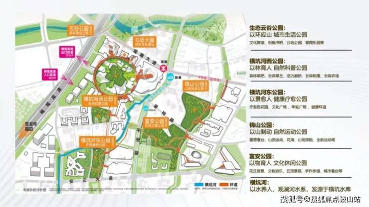 建设范围内包含5所幼儿园和3所九年一贯制学校、约40万㎡壹方天地商业、医疗卫生用地、社会福利用地、5大城市公园。
