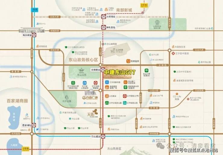 江宁区委区政府、江宁人民大会堂等驻地于此,集聚了江宁区90%政府资源,东山更是成为发展的决策中枢与精神源心。
