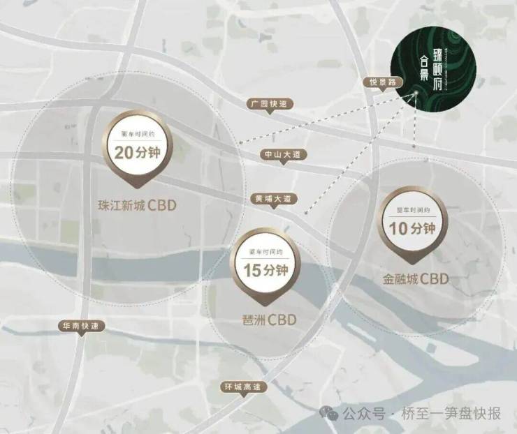 - 自驾:出门上悦景路,5-10分钟能到奥体板块,20分钟内直达珠江新城、金融城、智慧城这些核心区,不管是上班还是逛街,都很顺;还能快速上高速,去白云机场、广州南站也方便,出差旅游不用赶早;