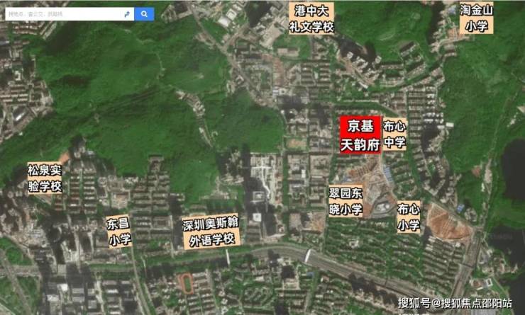 整个项目属于一个大学区,也算是一个学位房。直线3km范围内有105个幼儿园; 38个小学, 25个中学。最近的是翠园东晓集团布心中学以及它布心小学在我们的一个西北侧这个位置,其他中小学也项目三期的后面,临近的是三所学校,整个区域它算是个大学区,包含在香港中文大学附属礼文学校,也有翠园中学(东晓校区),项目华南侧这边的学校都是可以就读的。