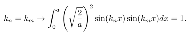 若上式积分中,kn不等于km,则有