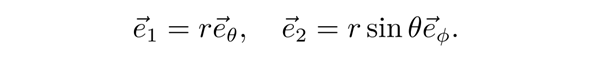 但这样的一组切矢虽然正交,但并不归一。这可由它与正交归一的切矢eθ,eϕ