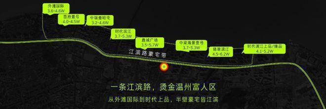 从外滩国际到时代上品,半壁豪宅皆江滨。该区域也是温州顶峰房价8.5W+传说的诞生地。(数据来源:温州楼市壹线)