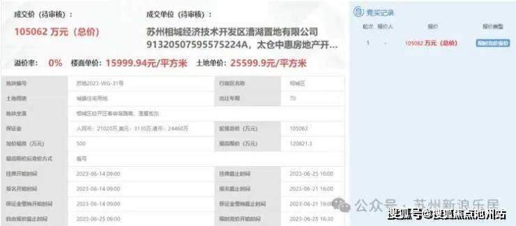 苏地2023-WG-31号地块于2023年6月25日成功出让,成交总价105062万元,成交楼面价约16000元/㎡。