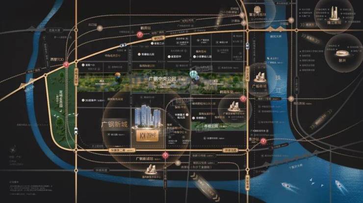 三大核心商圈,北区中海花湾天地商圈已醇熟,吃喝玩乐一应俱全;南区规划广钢总部,涵盖218m高总部大楼,4.8万㎡底下商业等;一路之隔是比肩陆家嘴的125万㎡广船板块,打造总局集聚区,未来商业迸发。