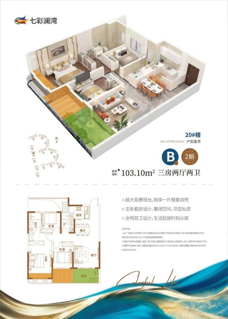 B户型103.10㎡:超大观景阳台、全明双卫