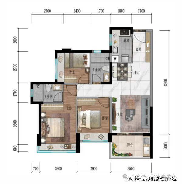 『中央园景 舒适三房』:94㎡户型 三房两厅两卫