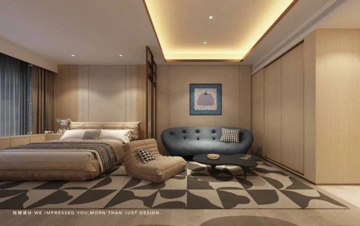设计师兼顾色彩搭配与人体工学,融合极简主义与雅奢气质,注重软装质感,营造优雅低调、不繁复且有调性的空间氛围。