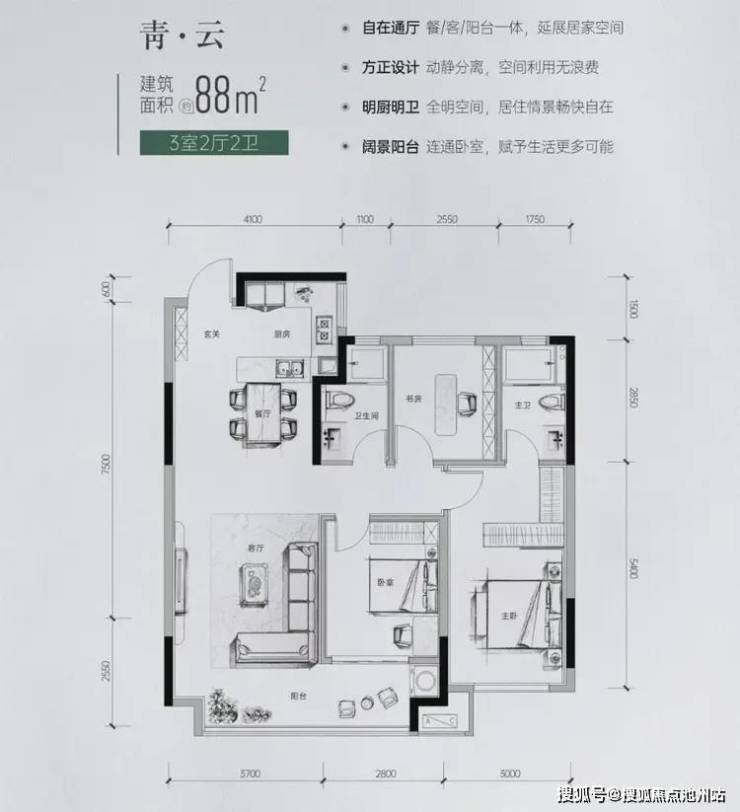 建面约88㎡高质价比优教三房,三面宽朝南搭配约14㎡可拓展阳台,清风无间,阔尺采光难得一见。约16.5㎡套房式主卧,媲美建面约105㎡户型。成长型空间设计,满足初代学龄家庭所需。