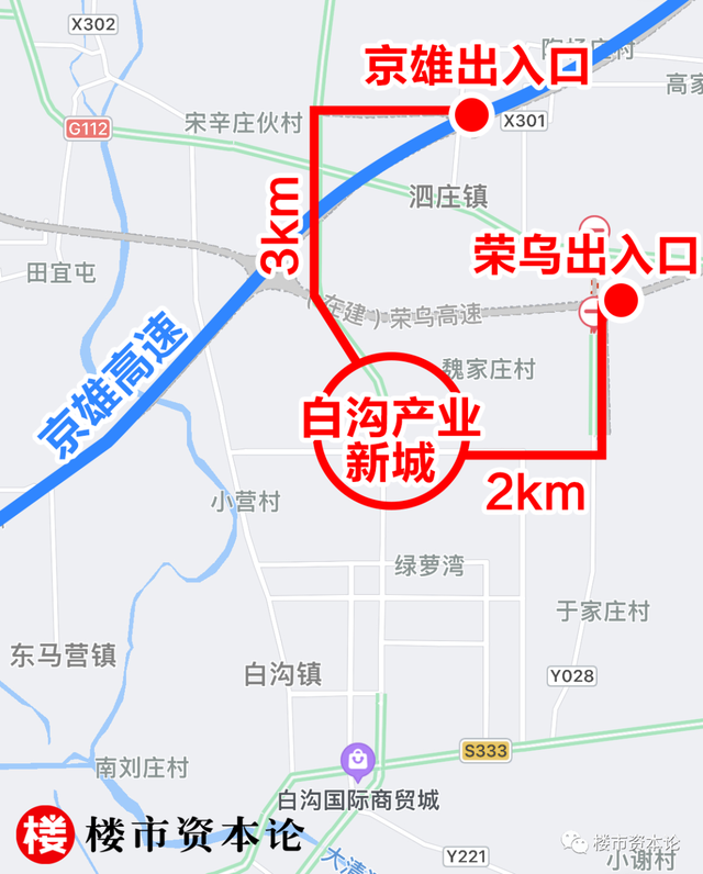 从地图上看,京雄高速进入雄安核心区前从白沟产业新城北部设有连接G230国道(京白连接线)的出入口收费站,距离白沟产业新城约3公里。