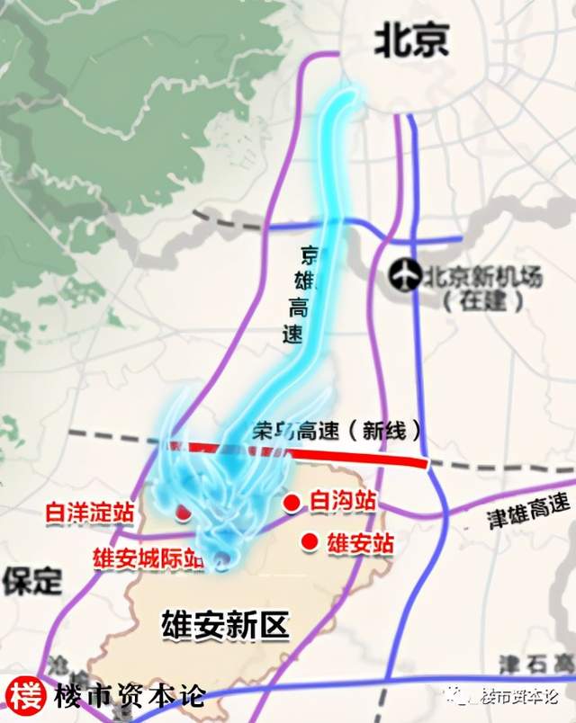 另外,与京雄高速同步规划在建的荣乌高速(新线),也在白沟产业新城东侧不足2公里处,设有出入口收费站,沿北一环东延路(在建)即可到达。