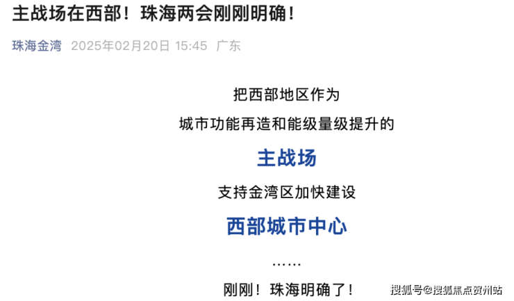 两会释放重磅信号:西部地区将成为城市功能再造和能级提升的主战场,而珠海金湾区作为粤港澳大湾区西岸的核心增长极,被明确支持加快建设西部城市中心。