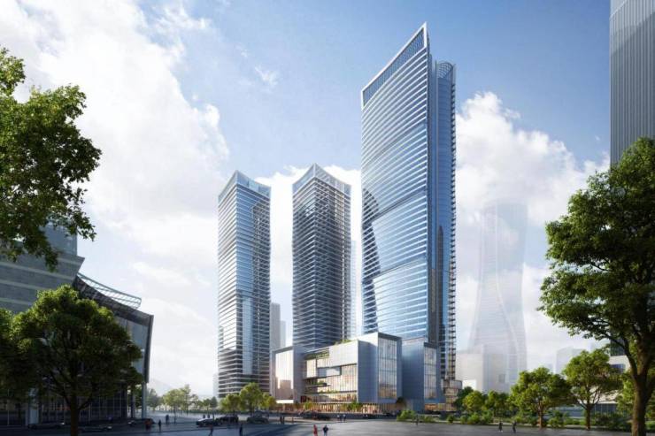 杭州绿发中心由中国绿发(原鲁能集团)开发,作为央企中国绿发的长三角战略级作品,项目总投资超300亿元,总建筑面积约43万平方米,由4幢塔楼组成,其中北侧主塔高约250米,南侧三幢塔楼高175-190米,与来福士中心共同构成钱江新城天际线新地标