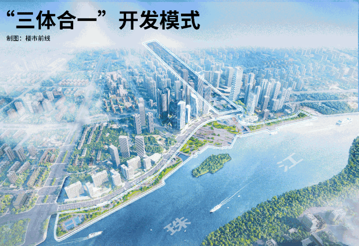 而广州滨江天地以约125万㎡连片大城,创新性提出广州首个“三体合一”概念: