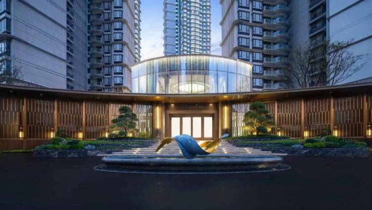 约46米的酒店式落客门庭,奢华的天然石材,搭配金属格珊、艺术雕塑,质感铺面而来。