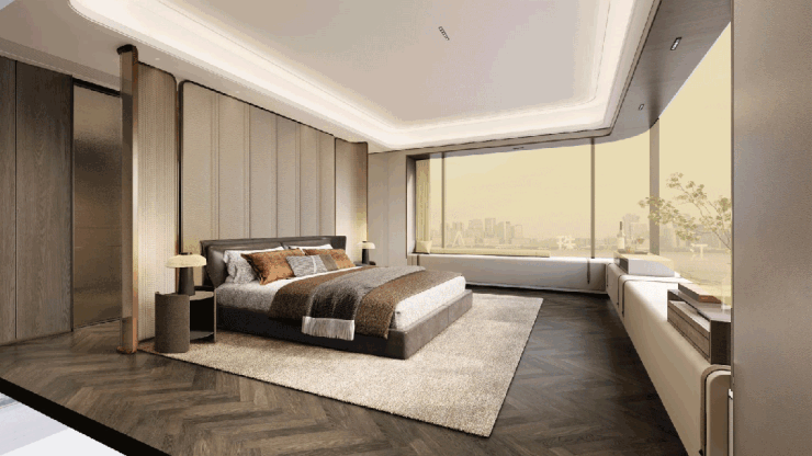 建面约140㎡以上户型,望江率达90%;建面约185、240㎡户型实现100%望江,270°转角飘窗的设计,更将江景视野拉满——推窗即是珠江景致,无论是清晨的江雾、午后的波光,还是傍晚的晚霞,都能成为日常生活的背景。