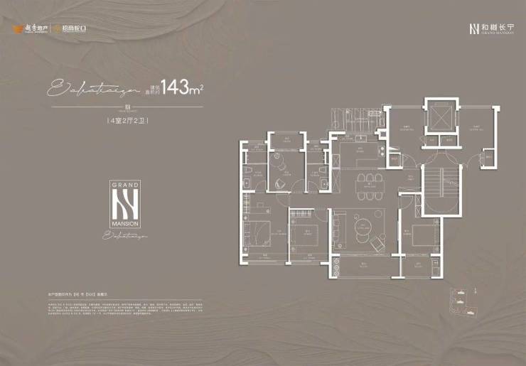 建面约143平的4房2厅2卫,升级为南北三阳台,空间利用率会更高。