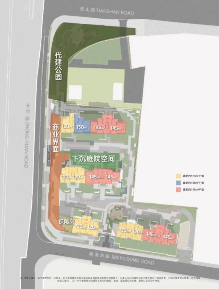 项目自带下沉式庭院和会所,包含高尔夫和健身房等功能。沿马路有约1200平的社区配套,规划做商业,并配建一个约1700平的口袋花园。比较有趣的是,商业3楼规划了空中花园,打造立体花园景观体系,只对内部业主开放。