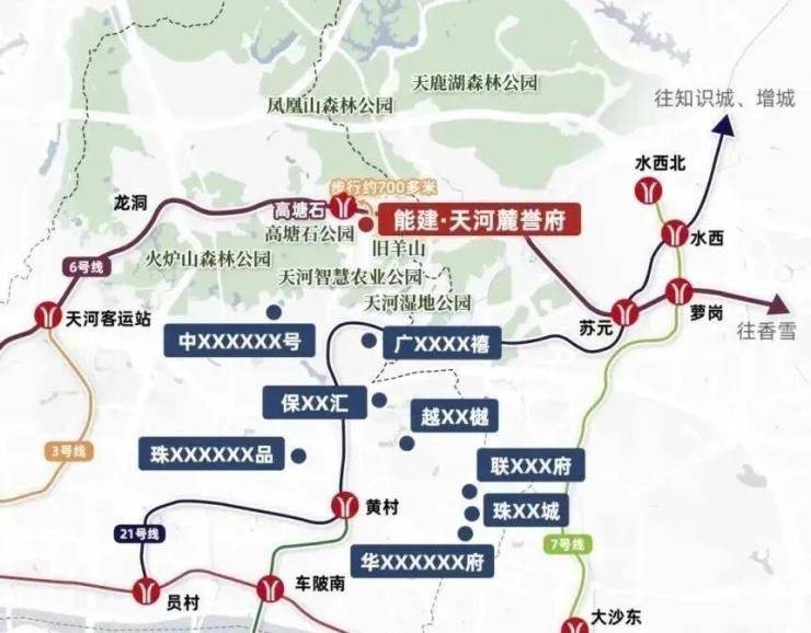 商业配套方面,现状依赖高塘石村底商,缺乏大型综合体,日常买菜、餐饮可满足,但*消费需前往龙洞商圈(车程 15 分钟)或科学城万达广场(地铁 3 站)。