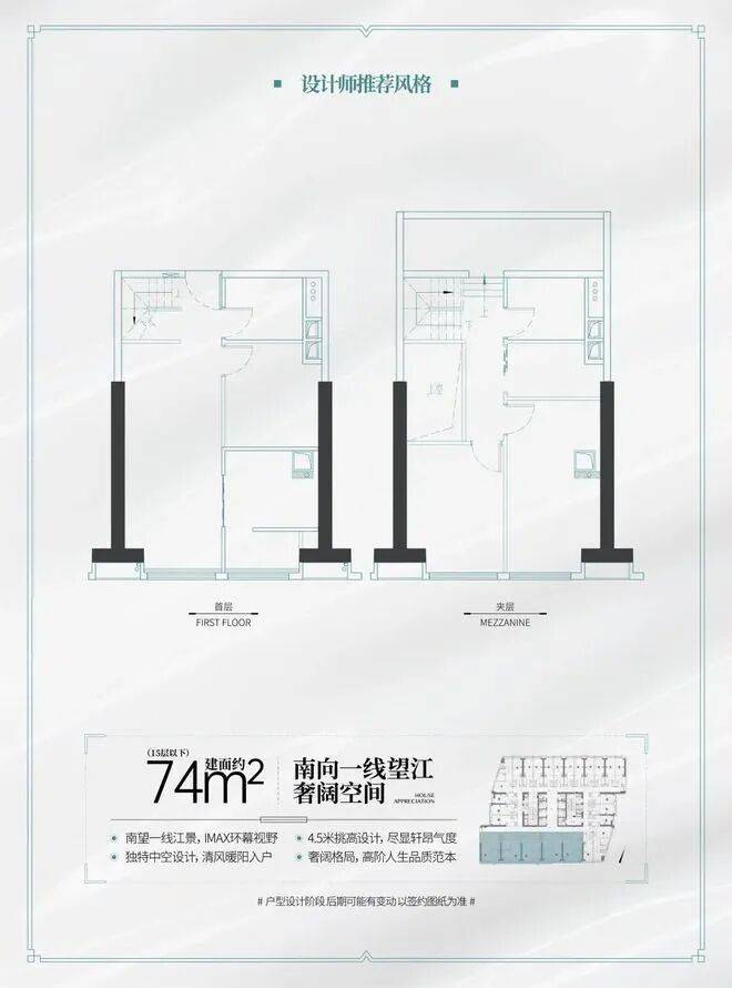 建面约74㎡南向一线望江LOFT(可明火)